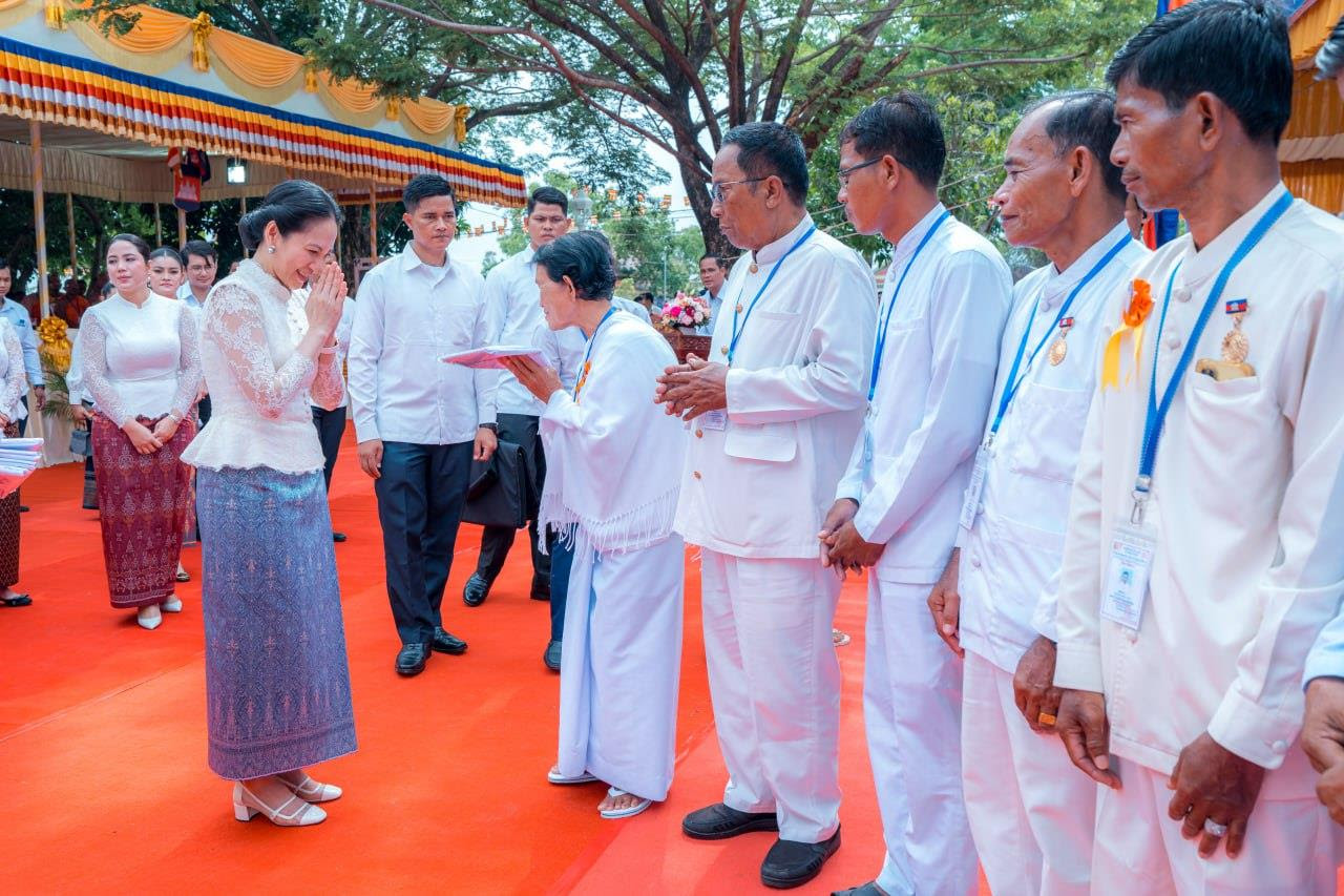 ក្នុងពិធីដ៏មហោទ្បារិកនោះ លោកជំទាវបណ្ឌិត ពេជ ចន្ទមុន្នី ហ៊ុនម៉ាណែត បាននាំយកសទ្ធាជ្រះថ្លារបស់សម្តេចមហាបវរធិបតី ហ៊ុន ម៉ាណែត រួមមានទេយ្យវត្ថុ និងបច្ចេយមួយចំនួន ទៅប្រគេនថ្វាយសម្តេច ព្រះថេរានុថេរៈគ្រប់ព្រះអង្គ តាជី យាយជី សីលវ័ន សីលវតី លោកគ្រូ អ្នកគ្រូ សិស្សានុសិស្ស យុវជនកាយរិទ្ធកម្ពុជា យុវជនកាកបាទក្រហមកម្ពុជា យុវជន អ.ម.ត យុវជនស.ស.យ.ក និងយុវជនសមាគមន៏ក្មេងវត្តផងដែរ ។
